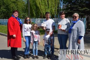 👨👩👧👦В международный день семьи председатель Чериковской районной профсоюзной организации работников АПК Оксана Дятлова вручила памятные подарки и поздравила со значимой праздничной датой мать четверых детей Ольгу Шевцову и многодетного отца Александра Шамшорика из ВСУ “Чериковская районная ветеринарная станция”.
