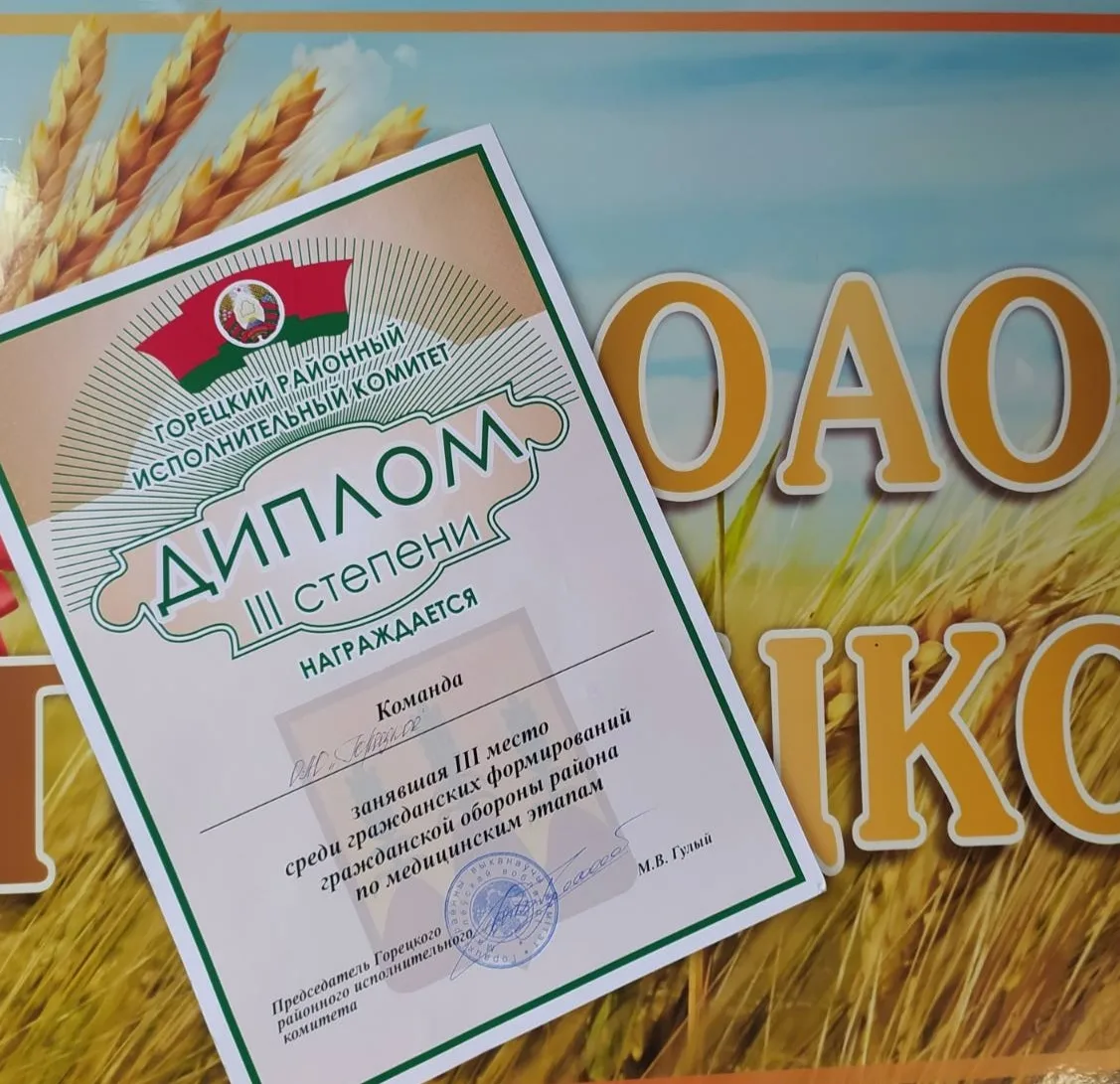 Формирование санитарной дружины ОАО “ГОРЕЦКОЕ” заняло третье место среди гражданских формирований гражданской обороны района по медицинским этапам